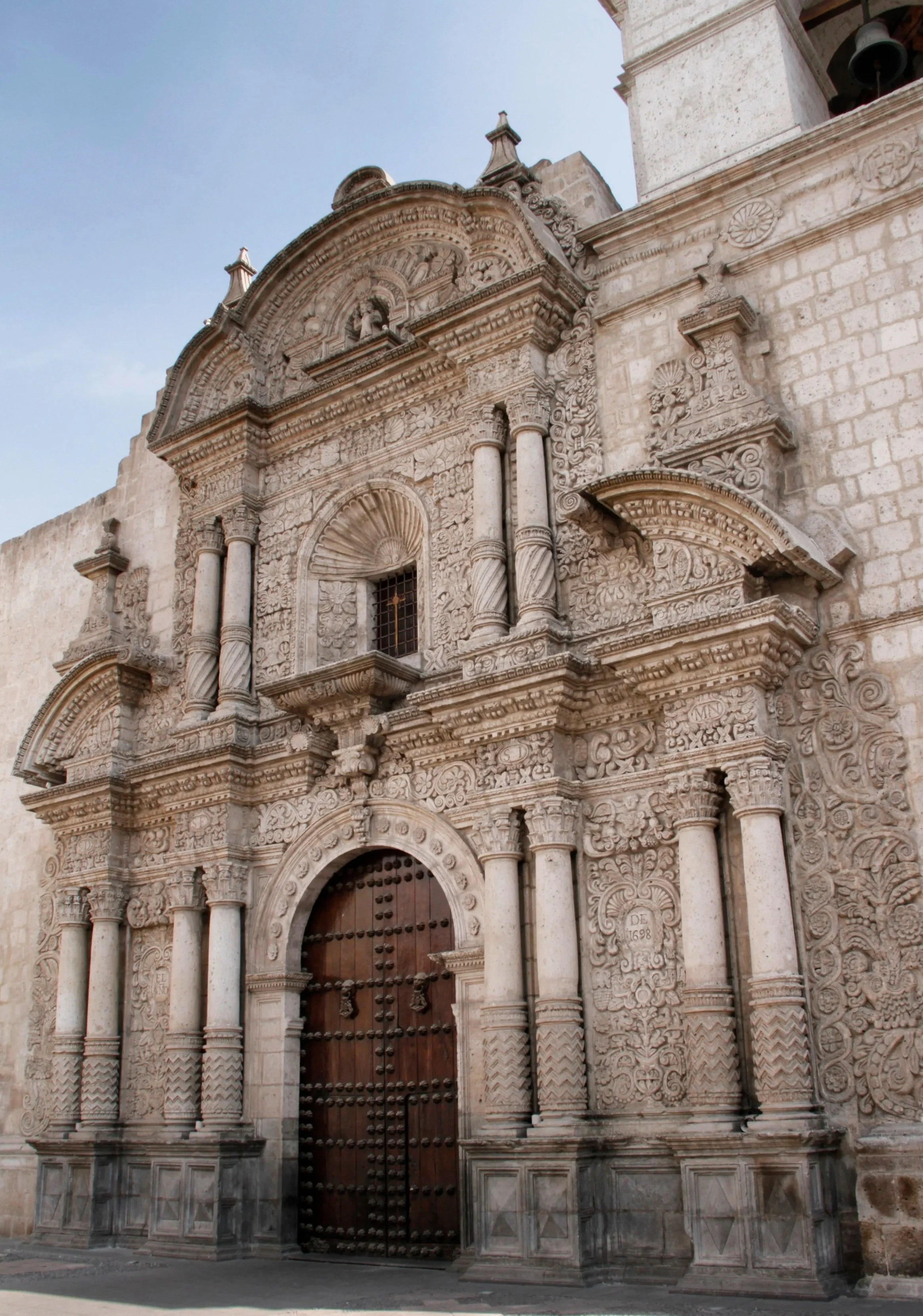 Nearby, the Cloisters of La Compañía unfold like a secret chapter of Arequipa’s history. This 17th-century Jesuit gem — carved from glowing sillar (volcanic stone) in the distinctive Andean Baroque or Baroque Mestizo style — stands a short stroll from the Plaza de Armas and is a UNESCO-recognized treasure. Every surface is a conversation between worlds: European Baroque motifs woven with indigenous designs, reliefs of Amazonian plants and animals and Christian figures rendered with astonishing delicacy. The result is ornate, surprising and quietly theatrical.