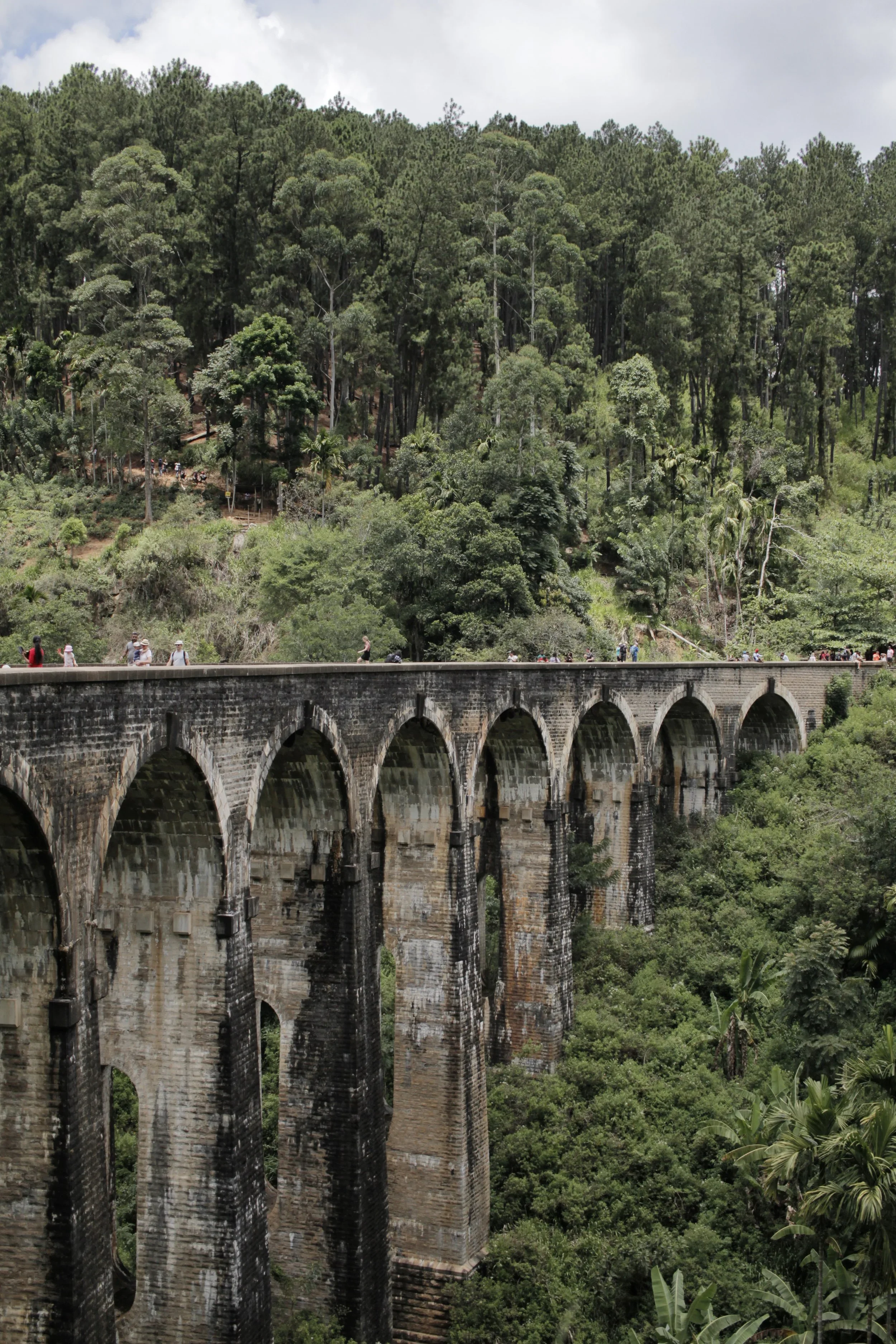 From Little Adam’s Peak, we made our way over to Nine Arches Bridge, a quick 10 minute drive. Our driver stopped alongside the road at a tiny trail leading down the mountainside. At first confused because the bridge wasn’t visible, he explained this was the best way to approach the bridge while avoiding the crowds. Climbing down through the brush from above, the secret trail was the best idea, allowing for gorgeous views from above as we emerged from the thick bushes and trees.