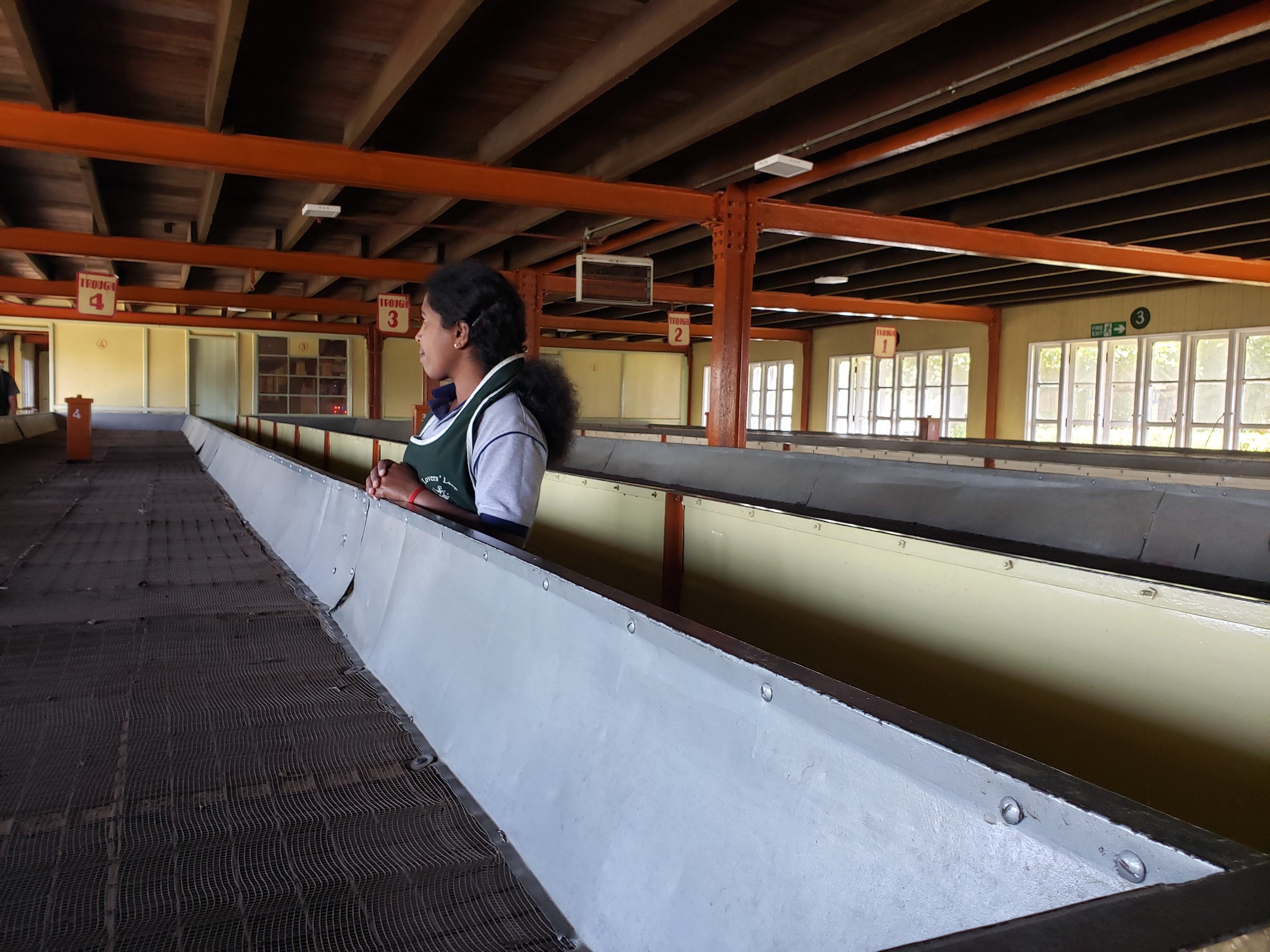 At the factory, they offer 30 minute tours for Rs250, less than $1 USD, which explain how tea is manufactured, graded and packed for export around the world. A guide asked us to put on aprons and began the tour alongside a small group of other visitors. They took us through the process of picking, drying and sorting tea. First, leaves are picked and dried for 12 hours in a trough where they lose about 45% of their moisture.
